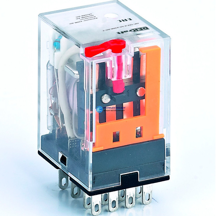 | Преимущества: | Новое исполнение с кнопкой ''ТЕСТ'' позволяет изменить статус контактной группы (открыт или закрыт) вручную без подключения к сети.|Компактность промежуточных реле позволяет использовать в местах с ограниченным пространством для монтажа.|Высокая коммутационная износостойкость засчет использования уникальной структуры дугогасящей пластины и применения высокотехнологичных серебросодержащих электрических контактов.|Высокая скорость переключения - менее 20 мс, позволяет использовать реле в любых системах автоматизации|Номинальный ток до 10 А и три вида контактных групп значительно расширяют область применения.|Простота монтажа обеспечивается благодаря втычным контактам реле.: |