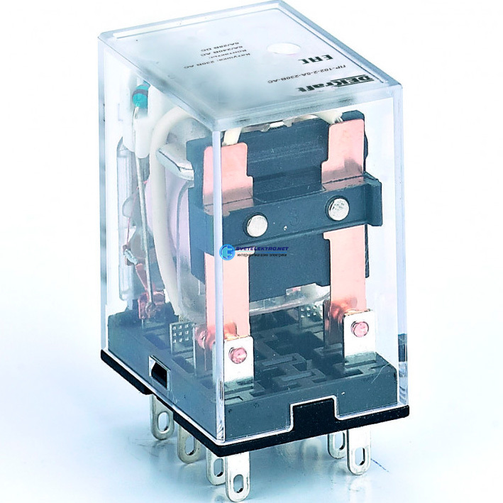 | Преимущества: | Новое исполнение с кнопкой ''ТЕСТ'' позволяет изменить статус контактной группы (открыт или закрыт) вручную без подключения к сети.|Компактность промежуточных реле позволяет использовать в местах с ограниченным пространством для монтажа.|Высокая коммутационная износостойкость засчет использования уникальной структуры дугогасящей пластины и применения высокотехнологичных серебросодержащих электрических контактов.|Высокая скорость переключения - менее 20 мс, позволяет использовать реле в любых системах автоматизации|Номинальный ток до 10 А и три вида контактных групп значительно расширяют область применения.|Простота монтажа обеспечивается благодаря втычным контактам реле.: |