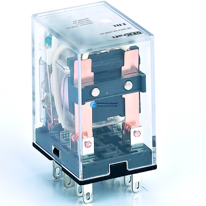 | Преимущества: | Новое исполнение с кнопкой ''ТЕСТ'' позволяет изменить статус контактной группы (открыт или закрыт) вручную без подключения к сети.|Компактность промежуточных реле позволяет использовать в местах с ограниченным пространством для монтажа.|Высокая коммутационная износостойкость засчет использования уникальной структуры дугогасящей пластины и применения высокотехнологичных серебросодержащих электрических контактов.|Высокая скорость переключения - менее 20 мс, позволяет использовать реле в любых системах автоматизации|Номинальный ток до 10 А и три вида контактных групп значительно расширяют область применения.|Простота монтажа обеспечивается благодаря втычным контактам реле.: |