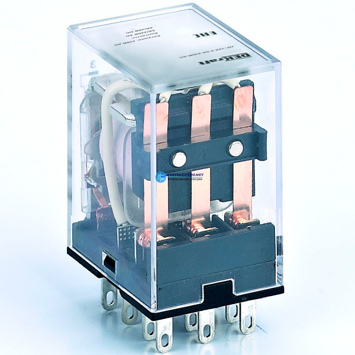 | Преимущества: | Новое исполнение с кнопкой ''ТЕСТ'' позволяет изменить статус контактной группы (открыт или закрыт) вручную без подключения к сети.|Компактность промежуточных реле позволяет использовать в местах с ограниченным пространством для монтажа.|Высокая коммутационная износостойкость засчет использования уникальной структуры дугогасящей пластины и применения высокотехнологичных серебросодержащих электрических контактов.|Высокая скорость переключения - менее 20 мс, позволяет использовать реле в любых системах автоматизации|Номинальный ток до 10 А и три вида контактных групп значительно расширяют область применения.|Простота монтажа обеспечивается благодаря втычным контактам реле.: |