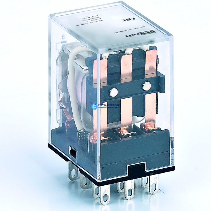 | Преимущества: | Новое исполнение с кнопкой ''ТЕСТ'' позволяет изменить статус контактной группы (открыт или закрыт) вручную без подключения к сети.|Компактность промежуточных реле позволяет использовать в местах с ограниченным пространством для монтажа.|Высокая коммутационная износостойкость засчет использования уникальной структуры дугогасящей пластины и применения высокотехнологичных серебросодержащих электрических контактов.|Высокая скорость переключения - менее 20 мс, позволяет использовать реле в любых системах автоматизации|Номинальный ток до 10 А и три вида контактных групп значительно расширяют область применения.|Простота монтажа обеспечивается благодаря втычным контактам реле.: |