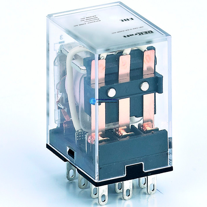| Преимущества: | Новое исполнение с кнопкой ''ТЕСТ'' позволяет изменить статус контактной группы (открыт или закрыт) вручную без подключения к сети.|Компактность промежуточных реле позволяет использовать в местах с ограниченным пространством для монтажа.|Высокая коммутационная износостойкость засчет использования уникальной структуры дугогасящей пластины и применения высокотехнологичных серебросодержащих электрических контактов.|Высокая скорость переключения - менее 20 мс, позволяет использовать реле в любых системах автоматизации|Номинальный ток до 10 А и три вида контактных групп значительно расширяют область применения.|Простота монтажа обеспечивается благодаря втычным контактам реле.: |