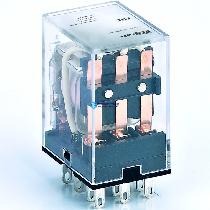 | Преимущества: | Новое исполнение с кнопкой ''ТЕСТ'' позволяет изменить статус контактной группы (открыт или закрыт) вручную без подключения к сети.|Компактность промежуточных реле позволяет использовать в местах с ограниченным пространством для монтажа.|Высокая коммутационная износостойкость засчет использования уникальной структуры дугогасящей пластины и применения высокотехнологичных серебросодержащих электрических контактов.|Высокая скорость переключения - менее 20 мс, позволяет использовать реле в любых системах автоматизации|Номинальный ток до 10 А и три вида контактных групп значительно расширяют область применения.|Простота монтажа обеспечивается благодаря втычным контактам реле.: |