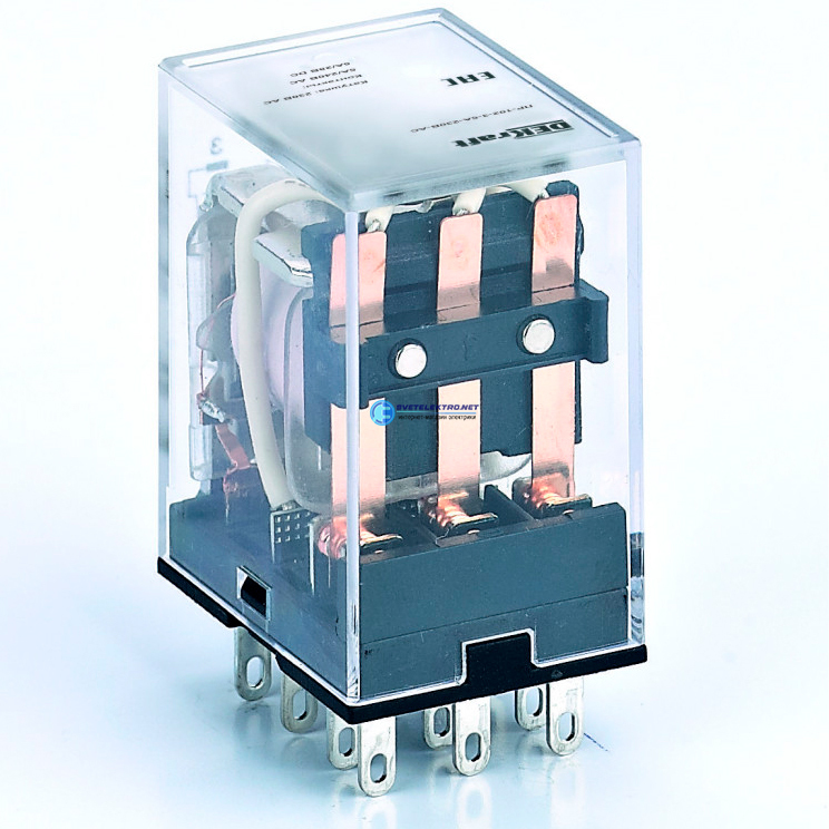 | Преимущества: | Новое исполнение с кнопкой ''ТЕСТ'' позволяет изменить статус контактной группы (открыт или закрыт) вручную без подключения к сети.|Компактность промежуточных реле позволяет использовать в местах с ограниченным пространством для монтажа.|Высокая коммутационная износостойкость засчет использования уникальной структуры дугогасящей пластины и применения высокотехнологичных серебросодержащих электрических контактов.|Высокая скорость переключения - менее 20 мс, позволяет использовать реле в любых системах автоматизации|Номинальный ток до 10 А и три вида контактных групп значительно расширяют область применения.|Простота монтажа обеспечивается благодаря втычным контактам реле.: |