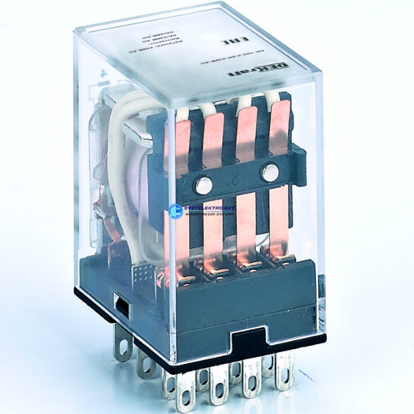 | Преимущества: | Новое исполнение с кнопкой ''ТЕСТ'' позволяет изменить статус контактной группы (открыт или закрыт) вручную без подключения к сети.|Компактность промежуточных реле позволяет использовать в местах с ограниченным пространством для монтажа.|Высокая коммутационная износостойкость засчет использования уникальной структуры дугогасящей пластины и применения высокотехнологичных серебросодержащих электрических контактов.|Высокая скорость переключения - менее 20 мс, позволяет использовать реле в любых системах автоматизации|Номинальный ток до 10 А и три вида контактных групп значительно расширяют область применения.|Простота монтажа обеспечивается благодаря втычным контактам реле.: |