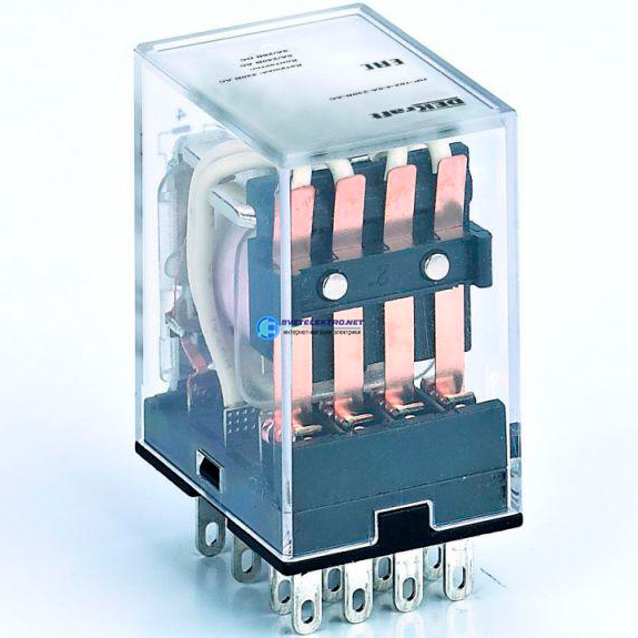 | Преимущества: | Новое исполнение с кнопкой ''ТЕСТ'' позволяет изменить статус контактной группы (открыт или закрыт) вручную без подключения к сети.|Компактность промежуточных реле позволяет использовать в местах с ограниченным пространством для монтажа.|Высокая коммутационная износостойкость засчет использования уникальной структуры дугогасящей пластины и применения высокотехнологичных серебросодержащих электрических контактов.|Высокая скорость переключения - менее 20 мс, позволяет использовать реле в любых системах автоматизации|Номинальный ток до 10 А и три вида контактных групп значительно расширяют область применения.|Простота монтажа обеспечивается благодаря втычным контактам реле.: |