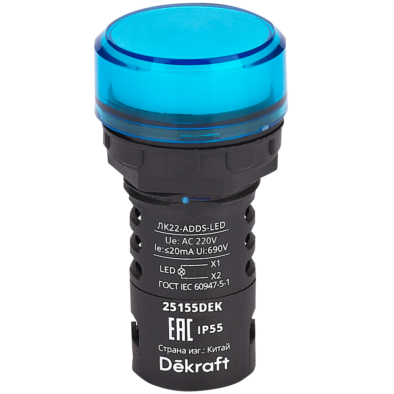 Лампа коммутационная ADDS D22 LED синяя 220В AC ЛK-22 IP55, код 25155DEK, производитель DEKraft