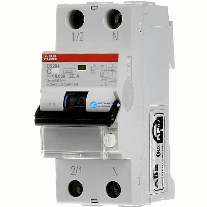 Выключатель автоматический дифференциальный (АВДТ)DS201CR 1P+N C20A 30мА тип АС, код 2CSR245072R1204, производитель ABB