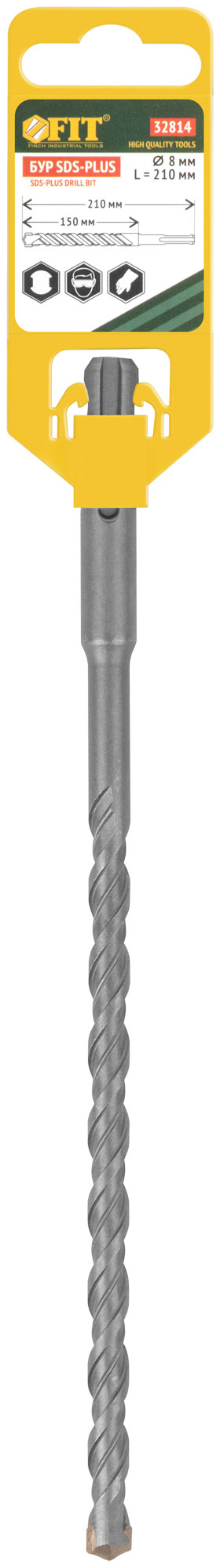 Бур по бетону SDS PLUS, Профи, W-образная вставка, двойная спираль, 8 х 210 мм 32814 FIT