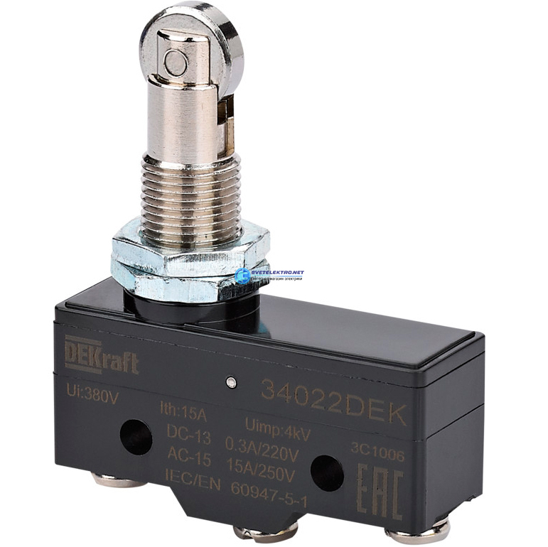 Выключатель конц. миниатюр. роликовый плунжерный тип 1НО1НЗ, код 34022DEK, производитель DEKraft