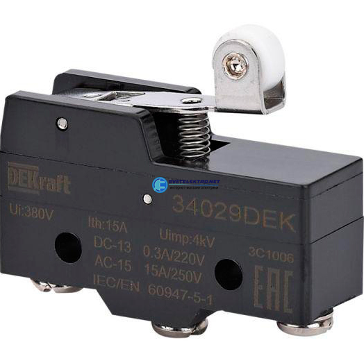 Выключатель конц. миниатюр. шарнир. короткого рычажного типа с роликом 1НО1НЗ, код 34029DEK, производитель DEKraft