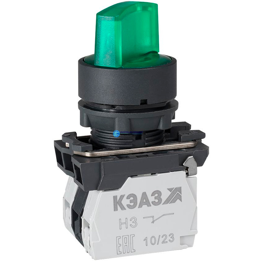 Переключатель КПЕ2120РЛ-24В-зеленый-2но+0нз-ручка-фикс-3поз-индикатор-IP40, код 354428, производитель КЭАЗ