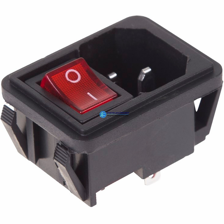 Выключатель клавишный 250В 10А (4с) ON-OFF красный с подсветкой и штекером C14 3PIN 36-2270 REXANT