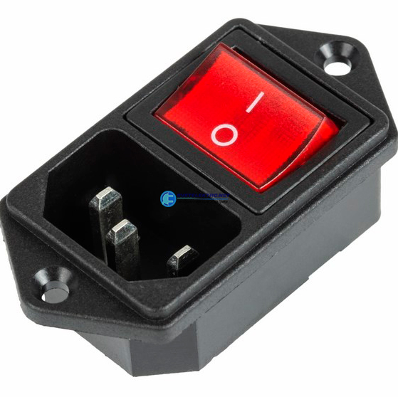 Выключатель клавишный 250В 6А (4с) ON-OFF красный с подсветкой и штекером C14 3PIN, код 36-2282, производитель REXANT