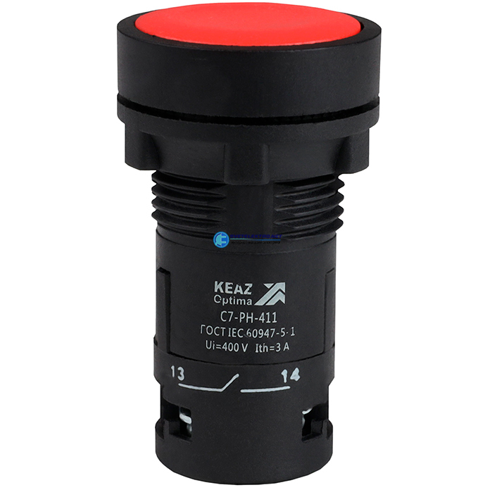 Кнопка с фиксацией OptiSignal Compact D22 C7-PH-411 красная 1НО+1НЗ XB7NH45, код 362075, производитель КЭАЗ