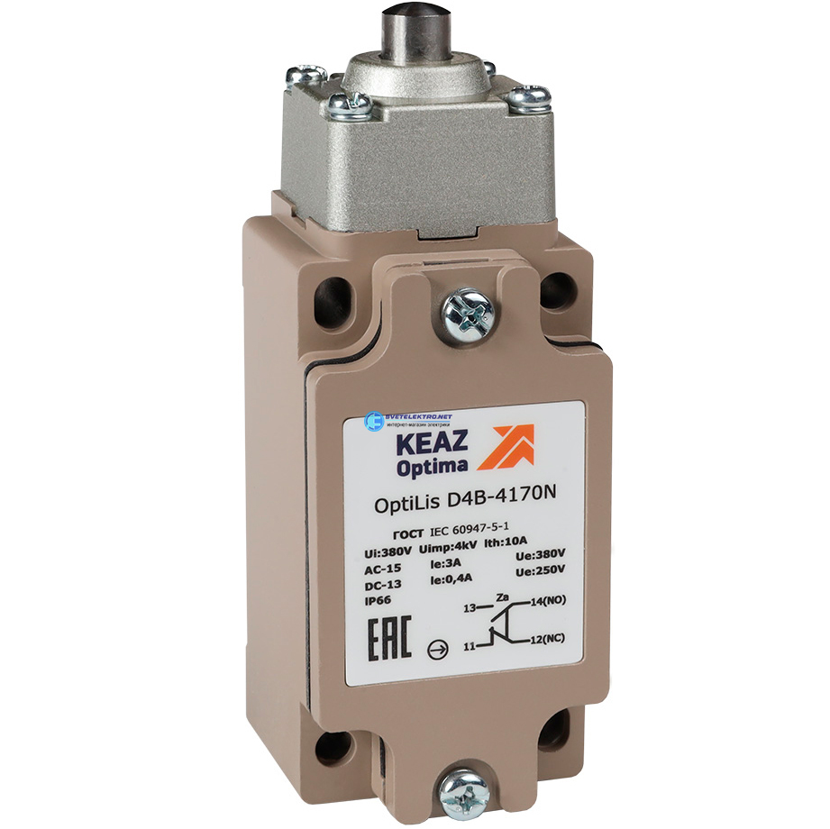 Выключатель концевой OptiLiS D4B-4170N толкатель металлический EN 50041 XCKJ161H29, код 365332, производитель КЭАЗ