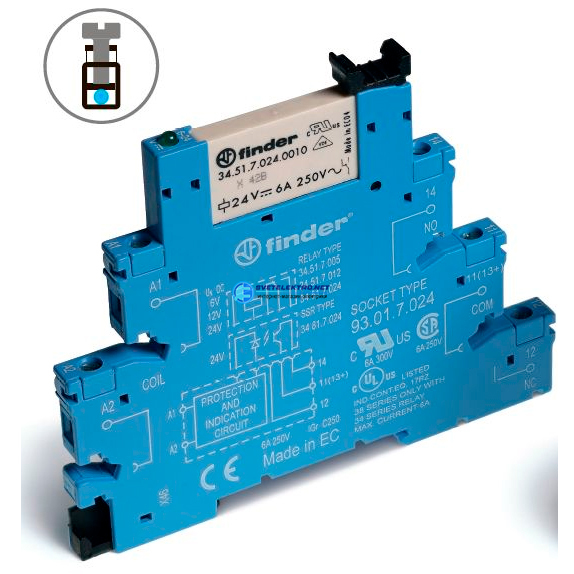 Модуль интерфейсный (сборка 34.51.7.060.0010 + 93.01.8.240), электромеханическое реле, 1CO 6A, контакты AgNi, питание 230-240В AC, категория защиты IP, код 38.51.8.240.0060, производитель FINDER