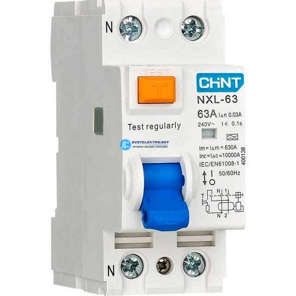Устройство защитного отключения NXL-63 2P 16А 30мА 6кА тип A AX (R) 399942 CHINT