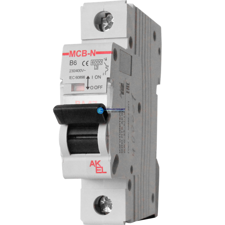 Выключатель автоматический ВА47-MCB-N-1P-B20-AC 1P/20A/B/6кА, код 400008, производитель АКЭЛ