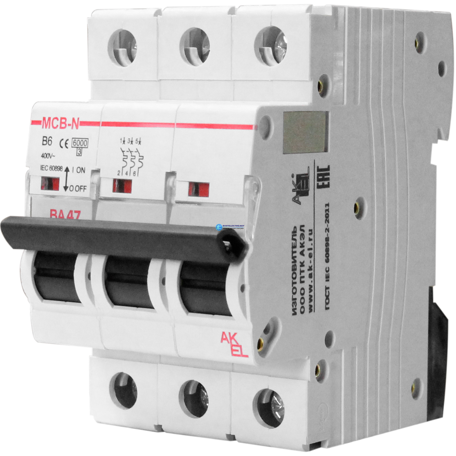 Выключатель автоматический ВА47-MCB-N-3P-B1-AC 3P/1A/B/6кА, код 400040, производитель АКЭЛ