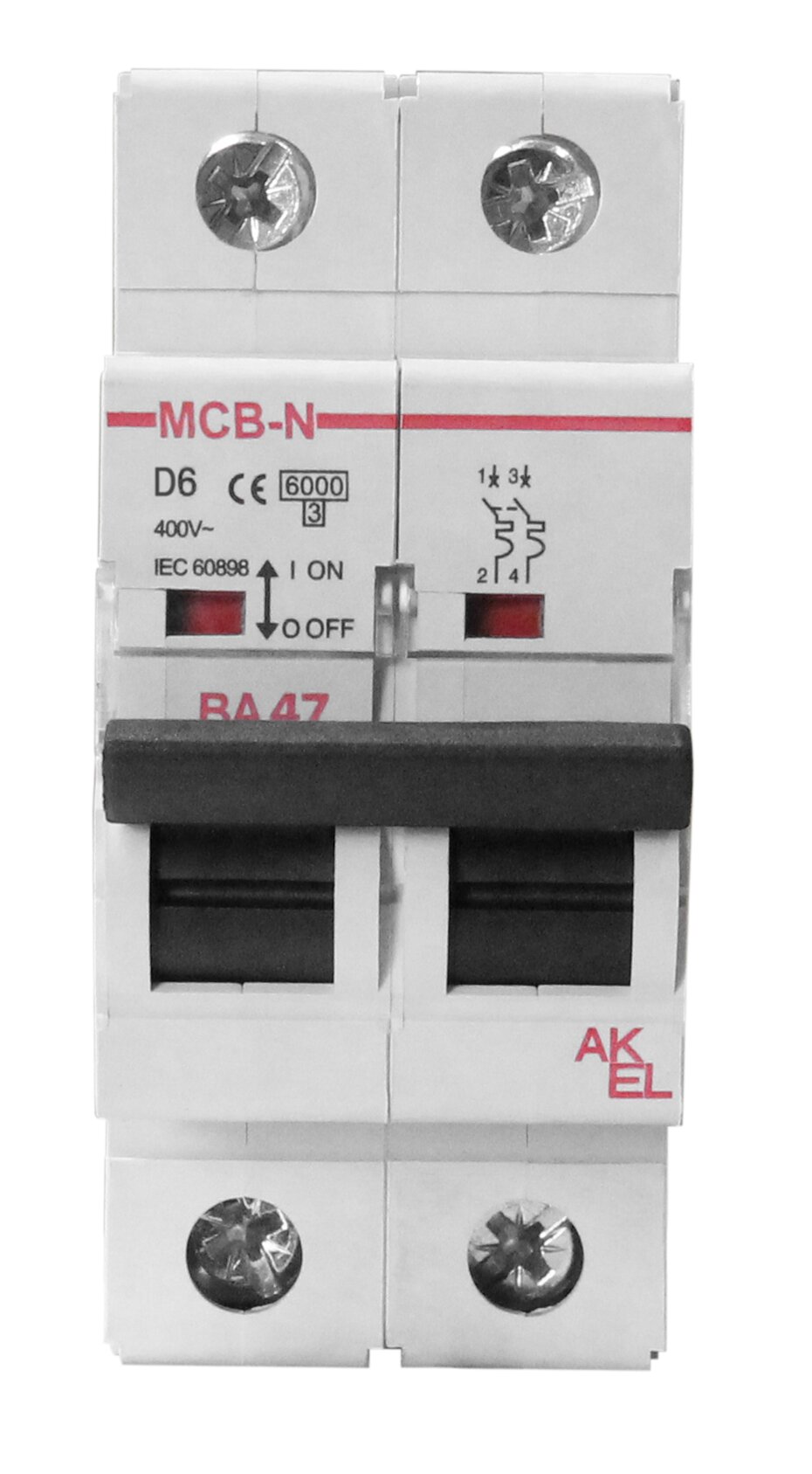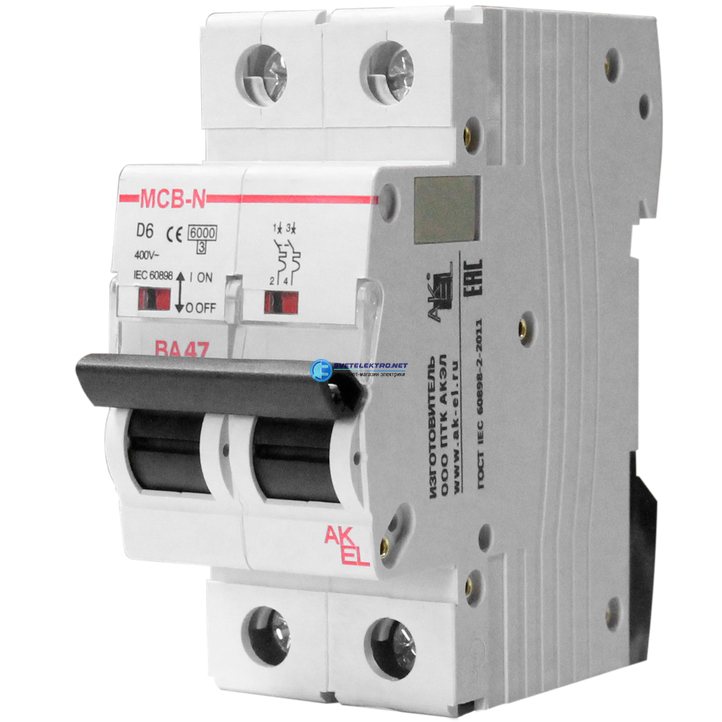 Выключатель автоматический ВА47-MCB-N-2P-D63-AC 2P/63A/D/6кА, код 400195, производитель АКЭЛ