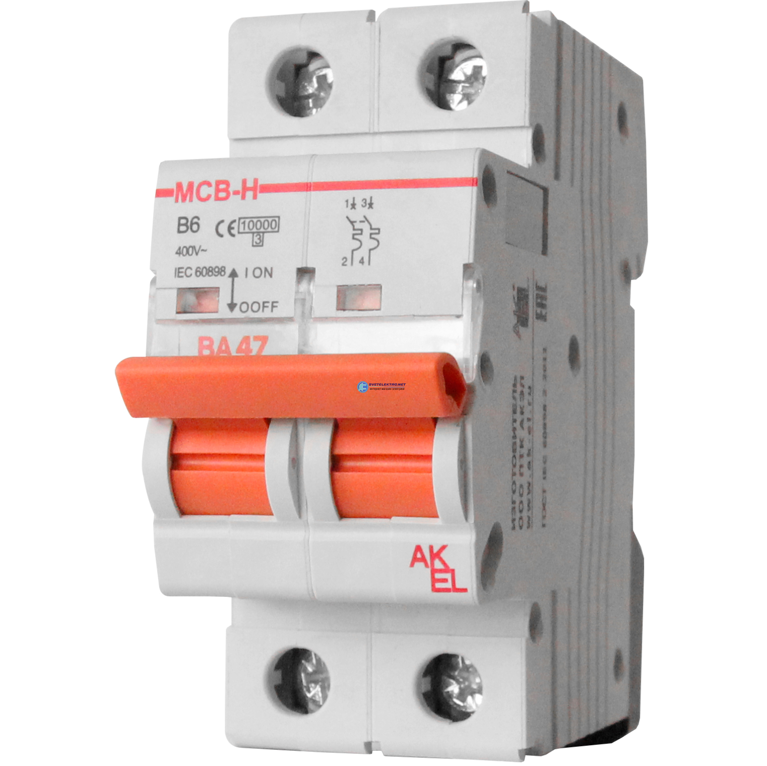 Выключатель автоматический ВА47-MCB-H-2P-B2-AC 2п 2A B 10кА, код 400262, производитель АКЭЛ