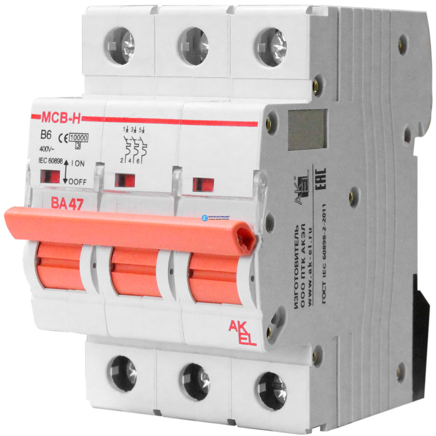 Выключатель автоматический ВА47-MCBH-3 PB 16A C 3п 16A B 10кА, код 400280, производитель АКЭЛ