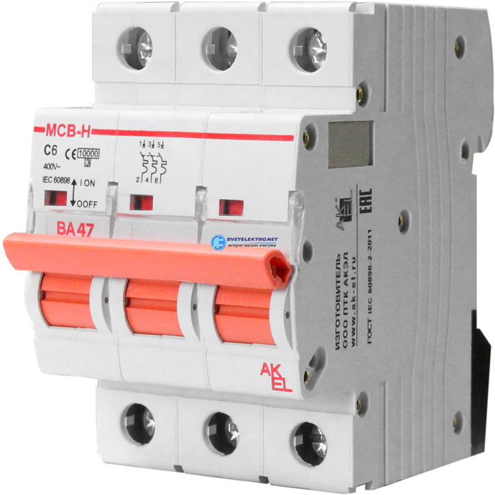Выключатель автоматический ВА47-MCB-H-3P-C3-AC 3P/3A/C/10кА, код 400354, производитель АКЭЛ