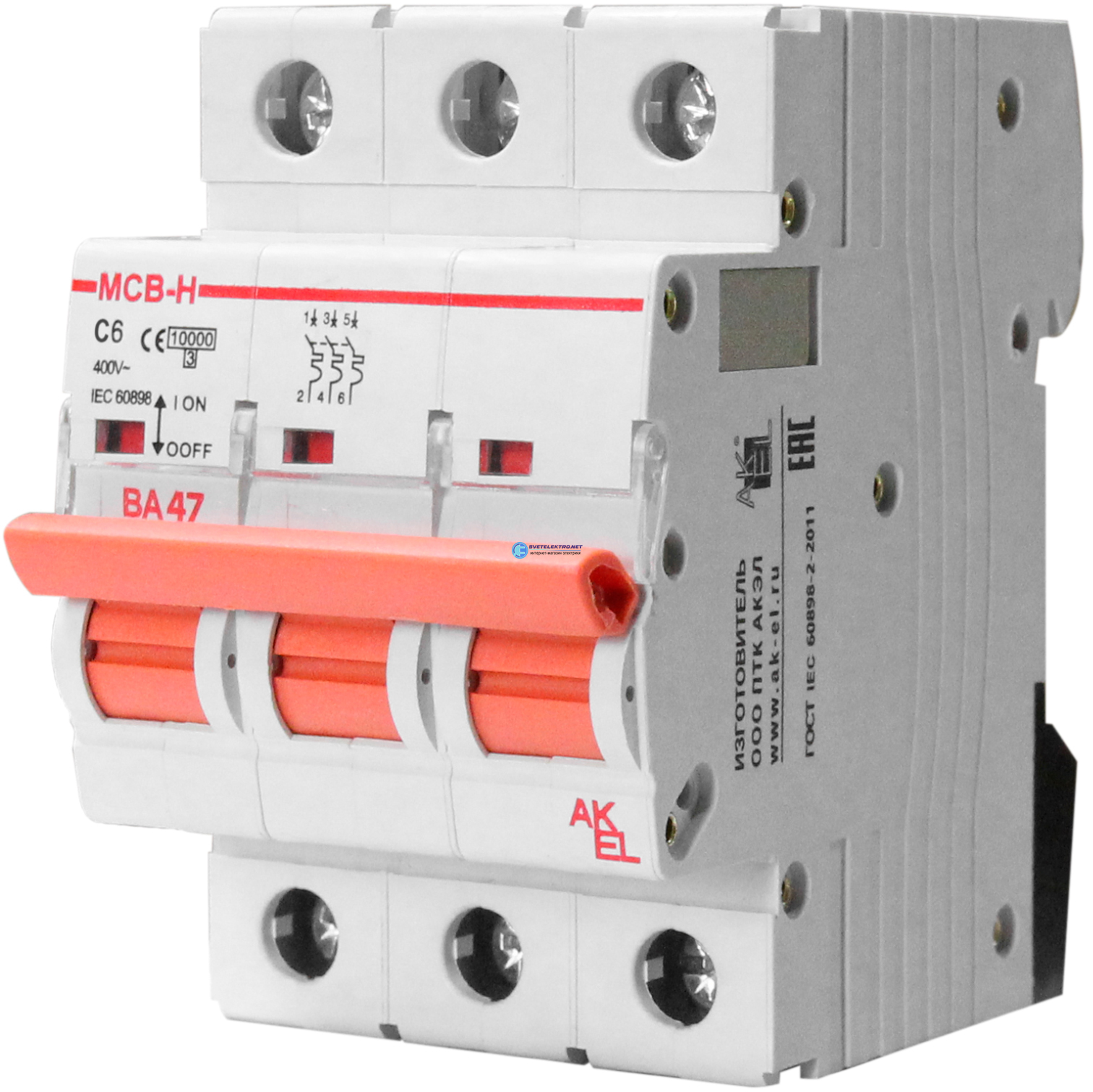 Выключатель автоматический ВА47-MCB-H-3P-C63-AC 3P/63A/C/10кА, код 400364, производитель АКЭЛ