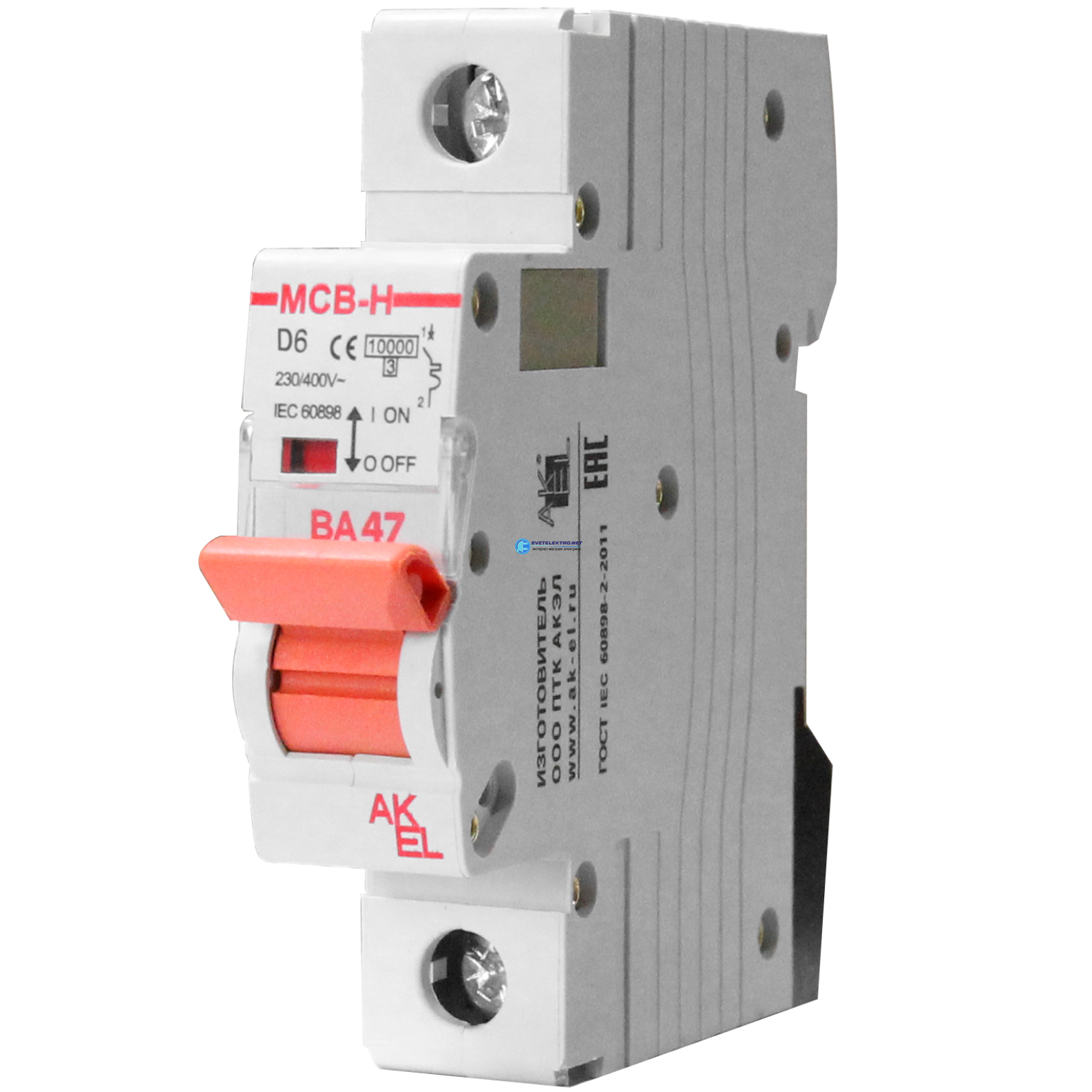 Выключатель автоматический ВА47-MCB-H-1P-D1-AC 1P/1A/D/10кА, код 400391, производитель АКЭЛ