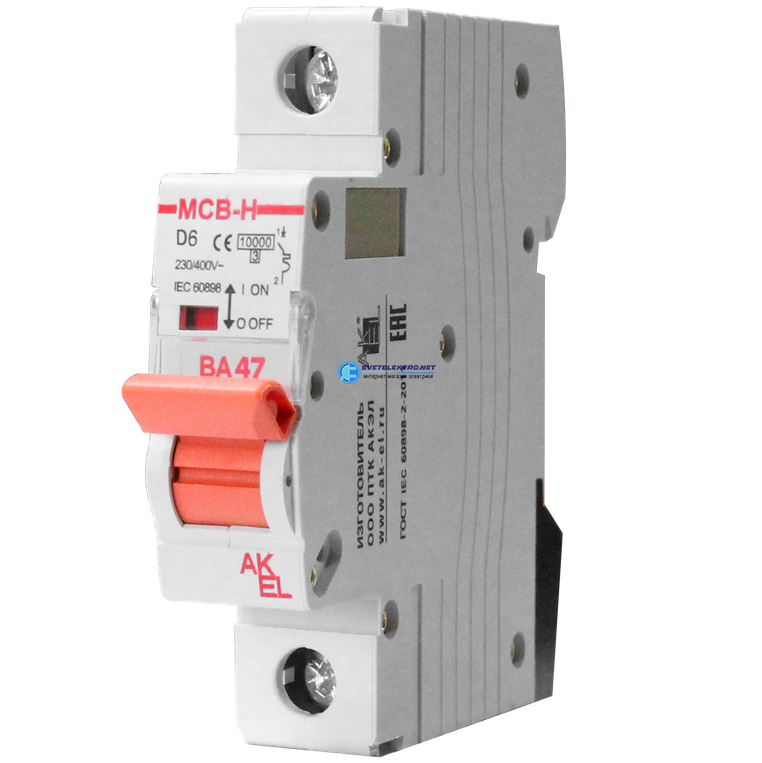 Выключатель автоматический ВА47-MCB-H-1P-D2-AC 1P/2A/D/10кА, код 400392, производитель АКЭЛ