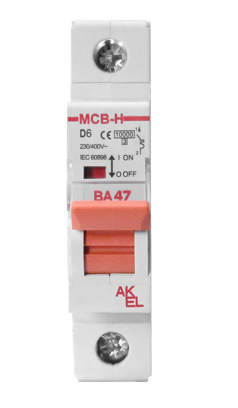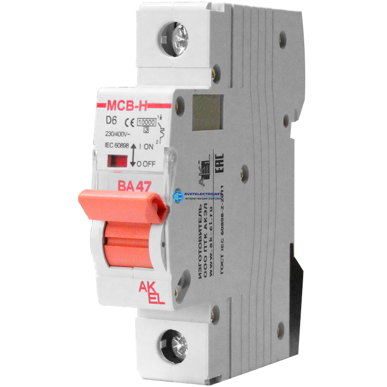 Выключатель автоматический ВА47-MCB-H-1P-D6-AC 1P/6A/D/10кА, код 400395, производитель АКЭЛ