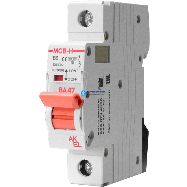 Выключатель автоматический ВА47-MCB-H-1P-D16-AC 1P/16A/D/10кА, код 400397, производитель АКЭЛ