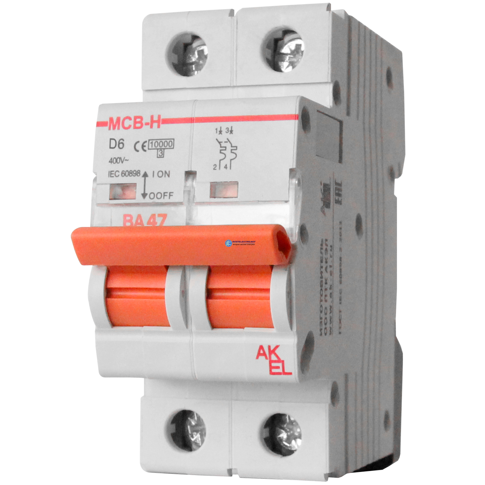Выключатель автоматический ВА47-MCB-H-2P-D3-AC 2P/3A/D/10кА, код 400419, производитель АКЭЛ