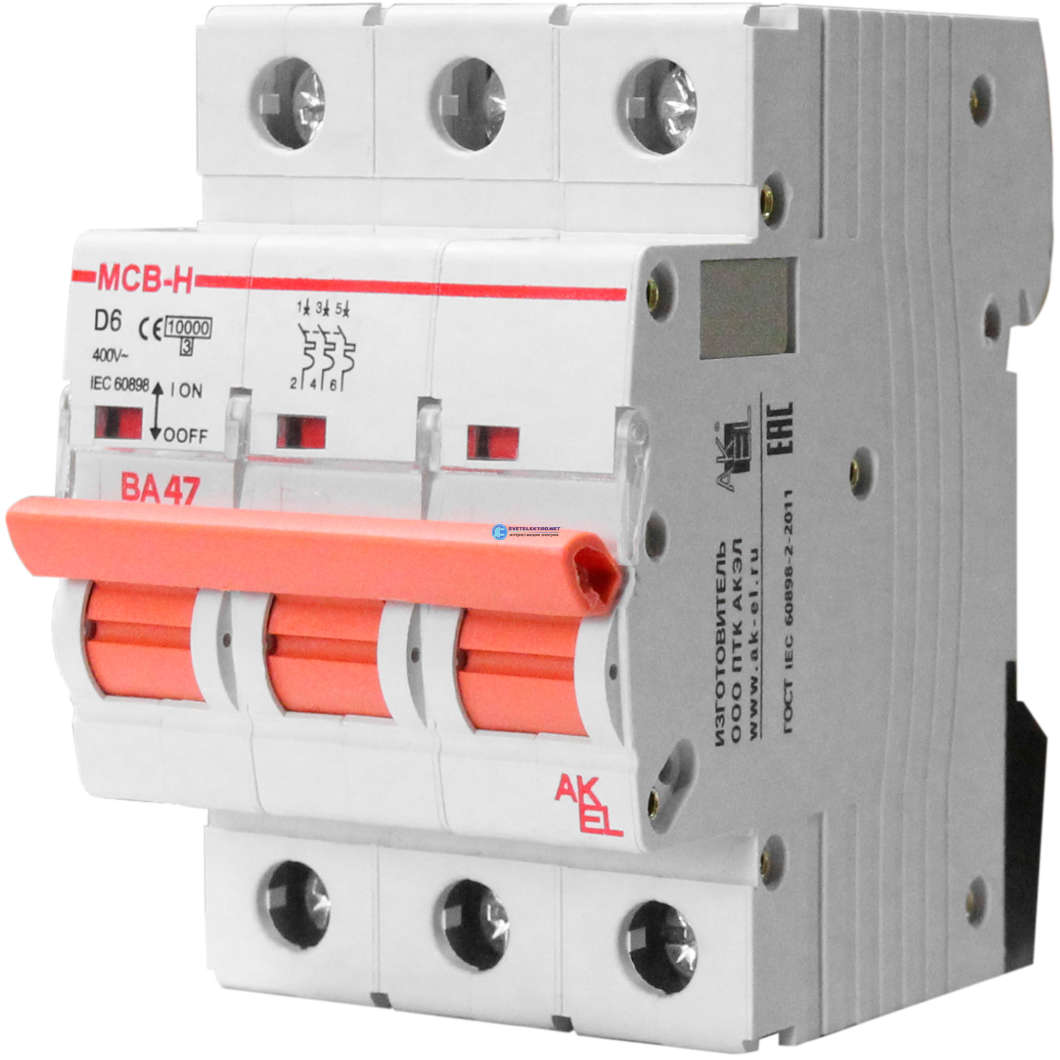 Выключатель автоматический ВА47-MCB-H-3P-D4-AC 3P/4A/D/10кА, код 400433, производитель АКЭЛ