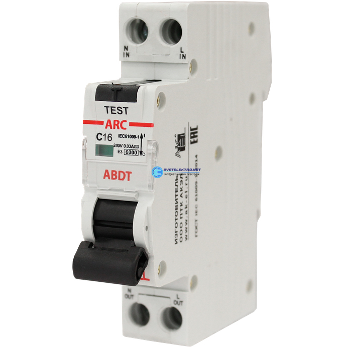Выключатель дифференциальный автоматический АВДТ-ABB-1P+N-C16-10mA-Тип ac 1P+N/16A/C/AC/230VAC/10mA/6kA, код 400916, производитель АКЭЛ