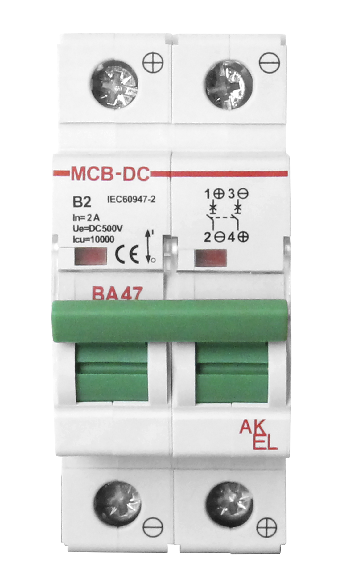 Выключатель автоматический ВА47-MCB-H-2P-C10-DC 2P/10A/C/500VDC/10кА, код 402544, производитель АКЭЛ