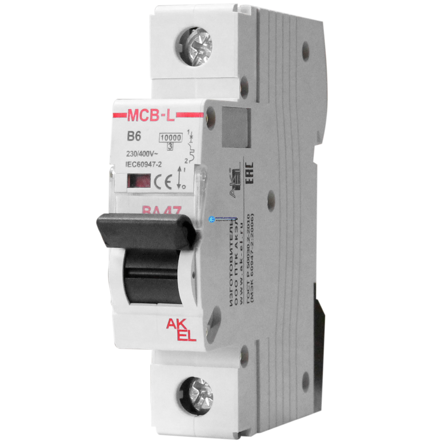 Выключатель автоматический ВА47-MCB-L-1P-B1-AC 1P/1A/B/10кА/230VAC/10кА/400VAC, код 404000, производитель АКЭЛ