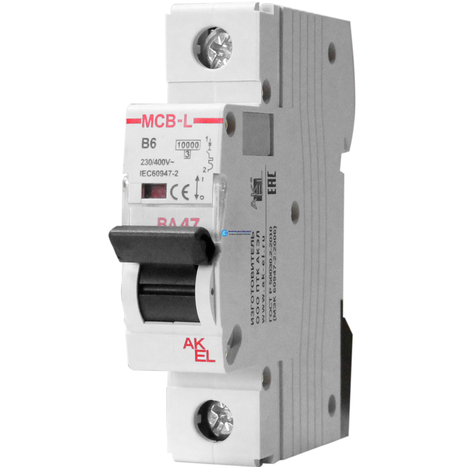 Выключатель автоматический ВА47-MCB-L-1P-B3-AC 1P/3A/B/10кА/230VAC/10кА/400VAC, код 404002, производитель АКЭЛ