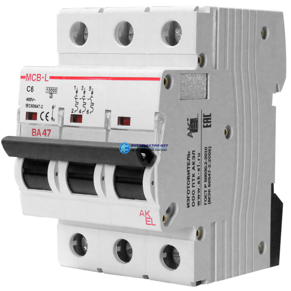 Выключатель автоматический ВА47-MCB-L-3P-C32-AC 3P/32A/C/10кА/230VAC/10кА/400VAC, код 404087, производитель АКЭЛ