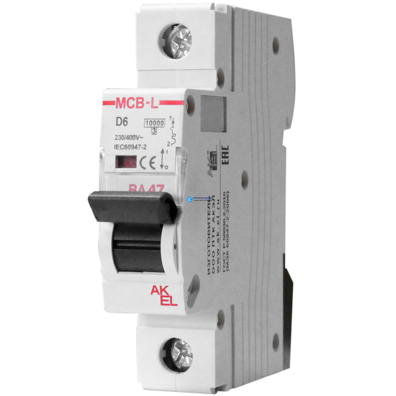 Выключатель автоматический ВА47-MCB-L-1P-D25-AC 1P/25A/D/10кА/230VAC/10кА/400VAC, код 404112, производитель АКЭЛ