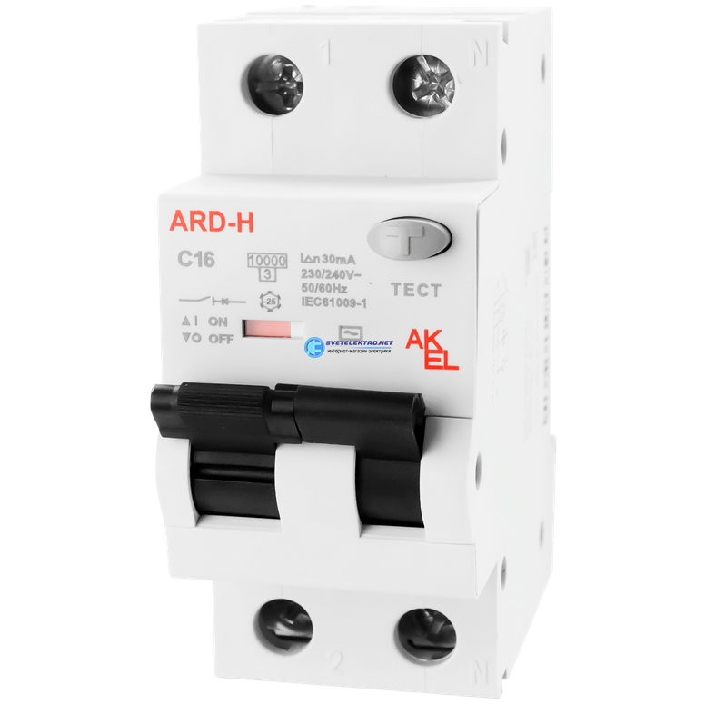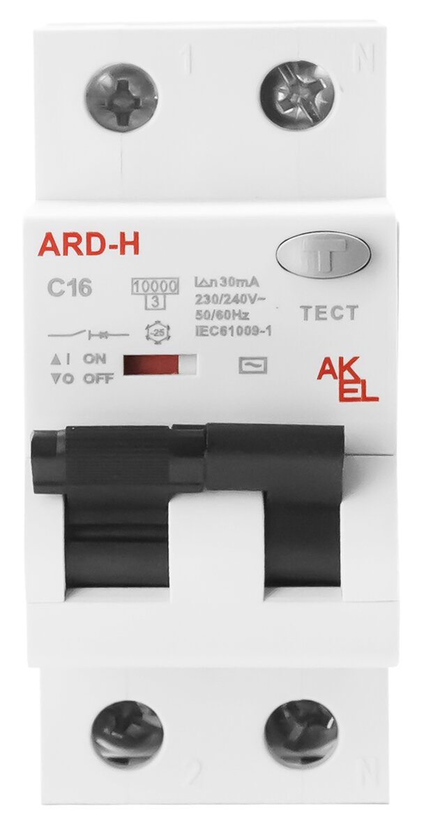 Выключатель дифференциальный автоматический АВДТ-ARD-H-1P+N-C16-30mA-ТипАС 1P+N/16A/C/AC/30mA/10kA, код 407804, производитель АКЭЛ