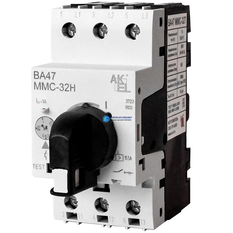 Выключатель автоматический для защиты двигателя ВА47 ММС-32Н 0.63A 3P/0.4…0.63A/400/415В/100кА, код 408763, производитель АКЭЛ