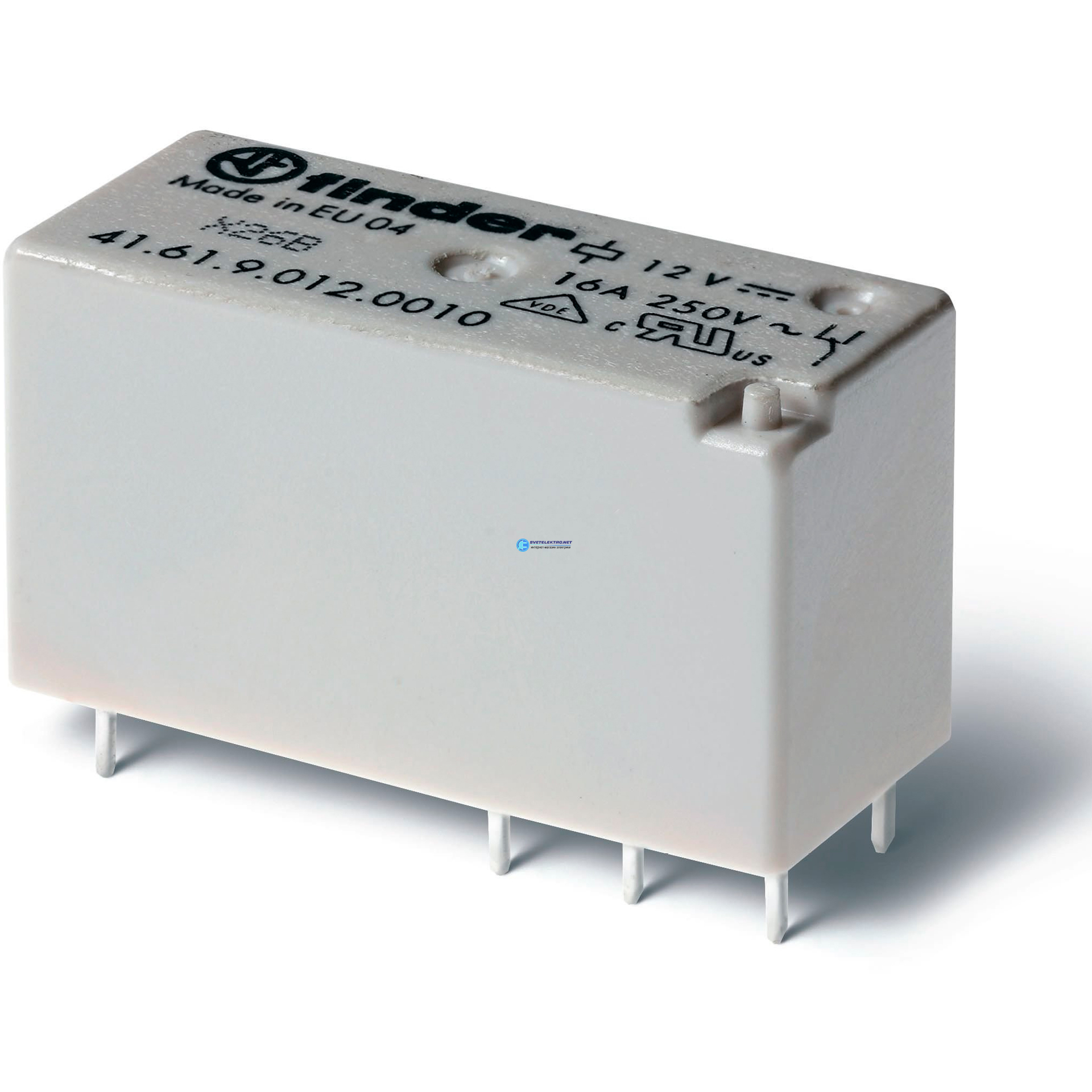 Реле низкопрофильное миниатюрное электромеханическое, монтаж на печатную плату, выводы с шагом 5мм, 1CO 16A, Контакты AgNi, катушка 12В DС, степень за, код 41.61.9.012.0010, производитель FINDER