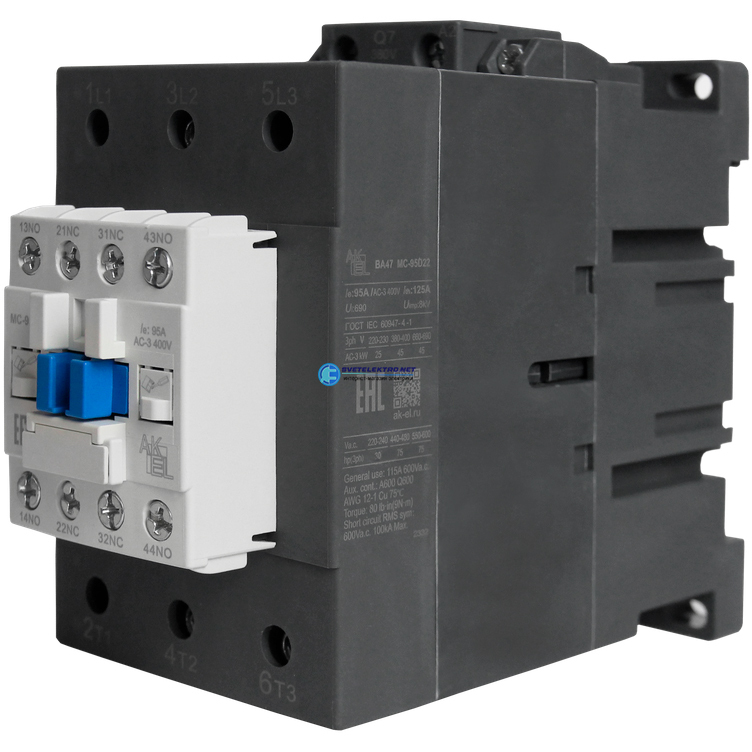 Контактор магнитный BA47 MC-95D22Q7 3P 2NO+2NC/95A/380VAC, код 418732, производитель АКЭЛ