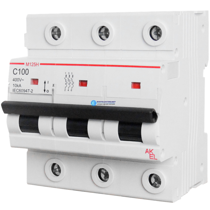 Выключатель автоматический ВА47-M125H-3P-C80-AC 3P/80A/C/10кА, код 419006, производитель АКЭЛ