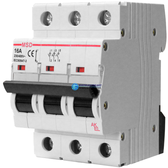 Выключатель нагрузки модульный ВА47-MSD-3P-63A 3P/63A/230/400VAC, код 419048, производитель АКЭЛ