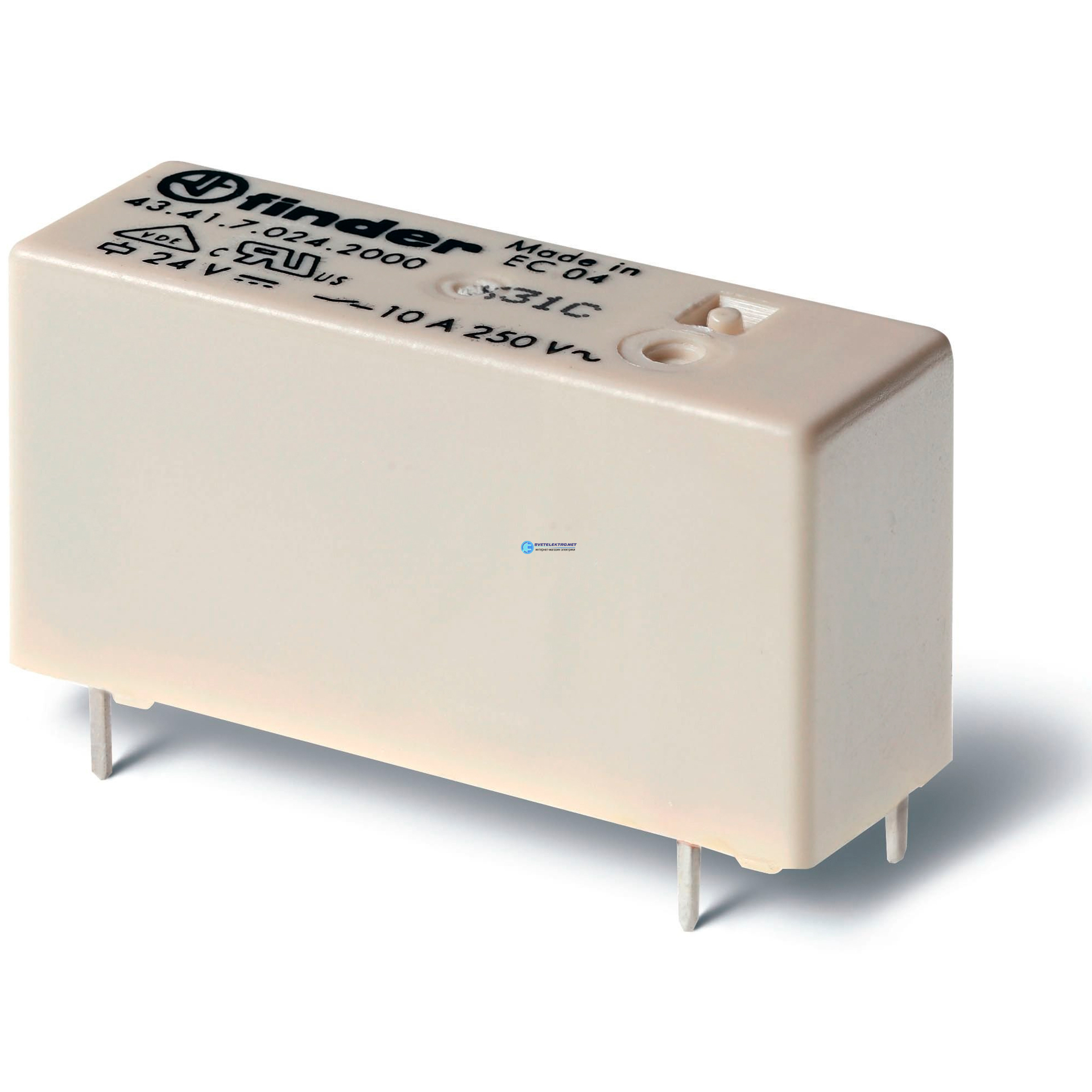 Реле низкопрофильное миниатюрное электромеханическое, монтаж на печатную плату, выводы с шагом 5мм, 1NO 10A, контакты AgSnO2, катушка 6В DС (чувствит., код 43.41.7.006.4301, производитель FINDER