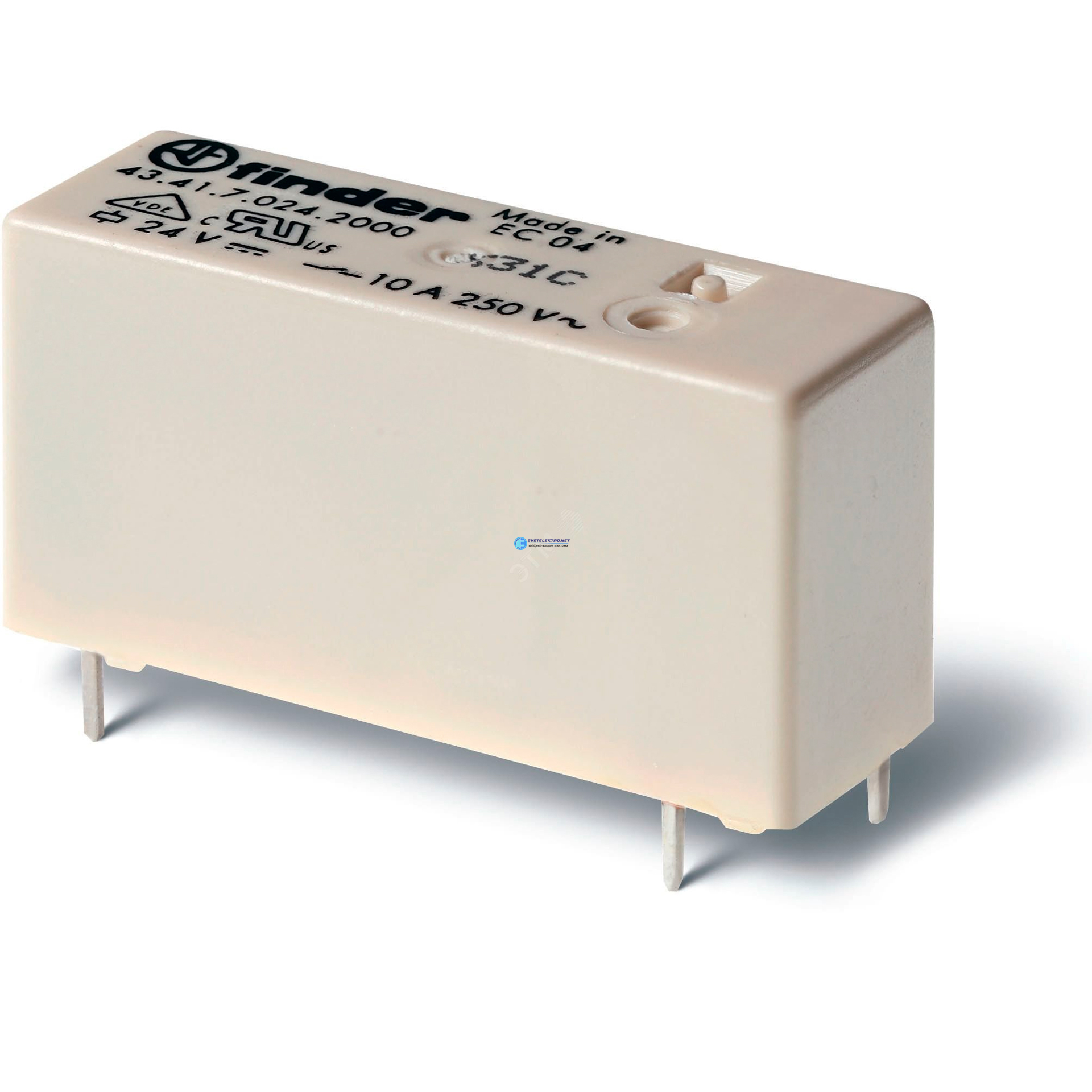 Реле низкопрофильное миниатюрное электромеханическое, монтаж на печатную плату, выводы с шагом 3.2мм, 1CO 10A, контакты AgSnO2, катушка 24В DС (чувств, код 43.41.7.024.4001, производитель FINDER
