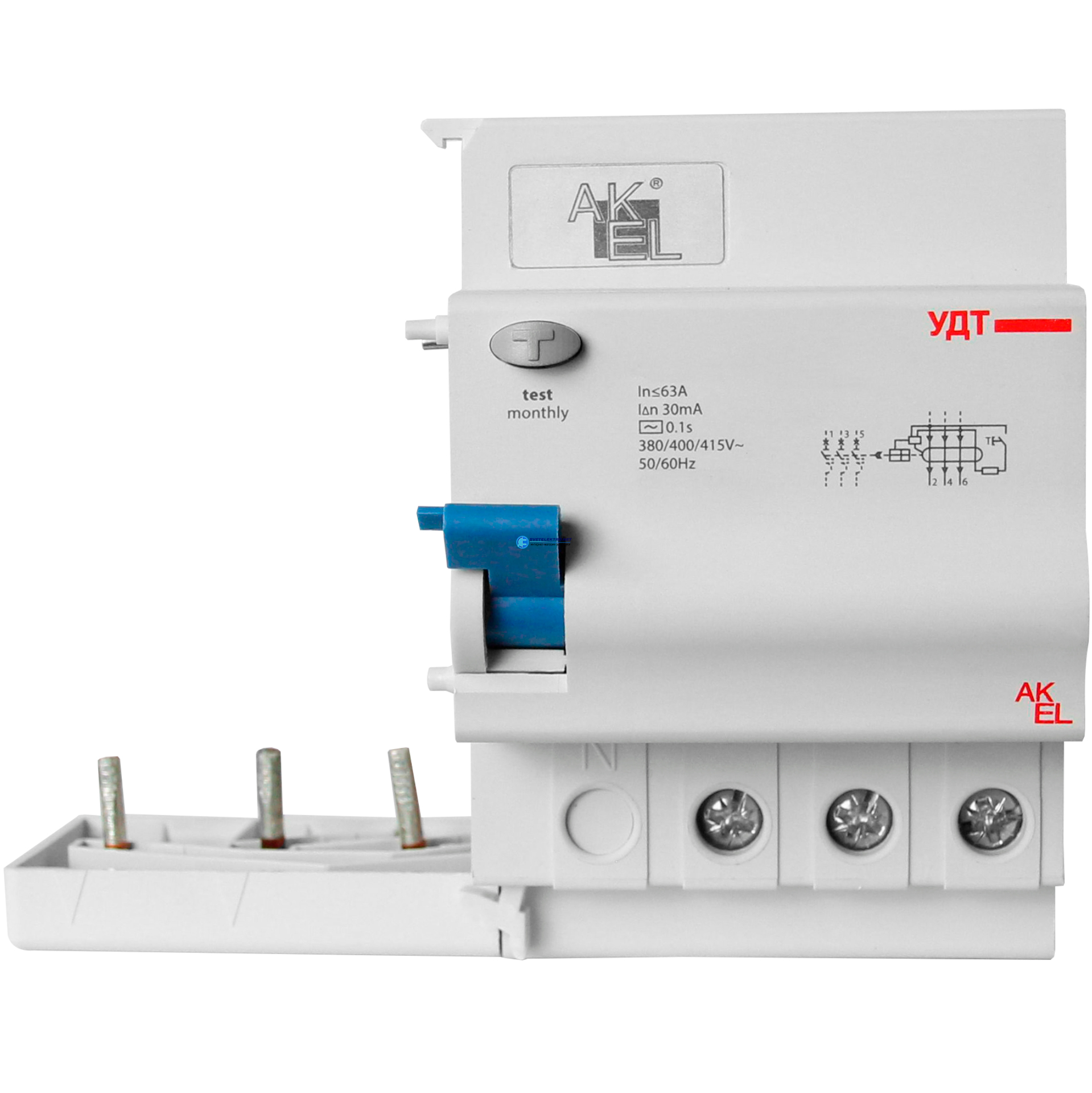 Устройство дифференциального тока УДТ-AKSOL-3P 30mA ТипAC 3P/380/400/415VAC/30mA, код 430324, производитель АКЭЛ